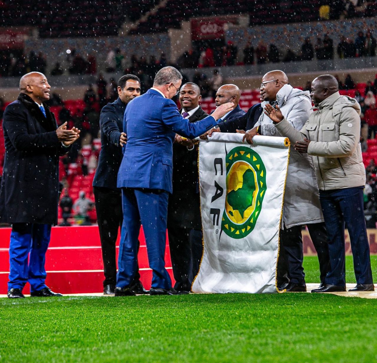 The president of the Confederation of African Football (CAF), Dr Patrice Motsepe, officially handed over the CAF flag to the representatives from Kenya, Tanzania, and Uganda at the Prince Moulay Abdellah Stadium in Rabat City last night, moments after the explosive final between Morocco and Senegal.